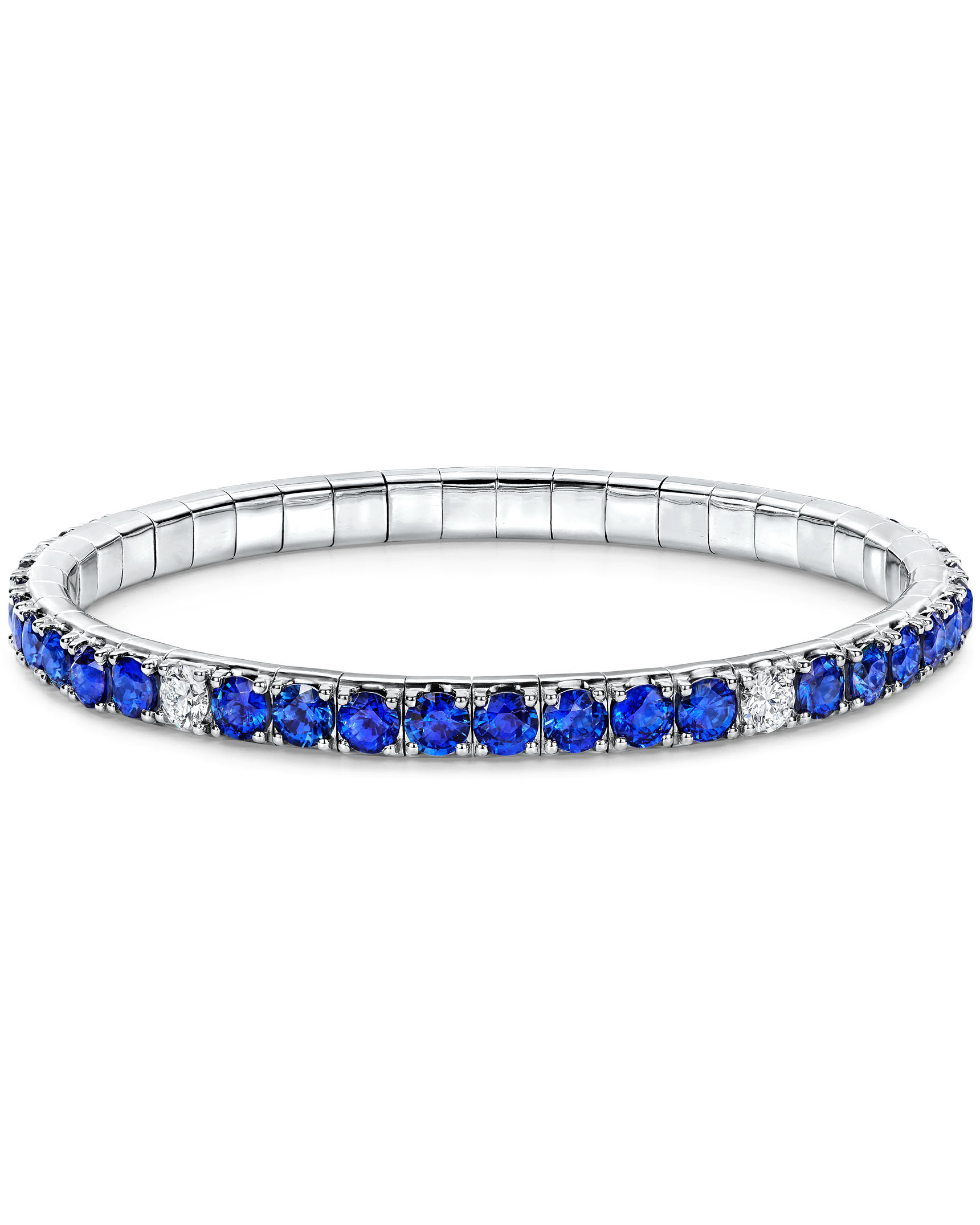 Blue Sapphire and Diamond Knife Edge Eternity Band
