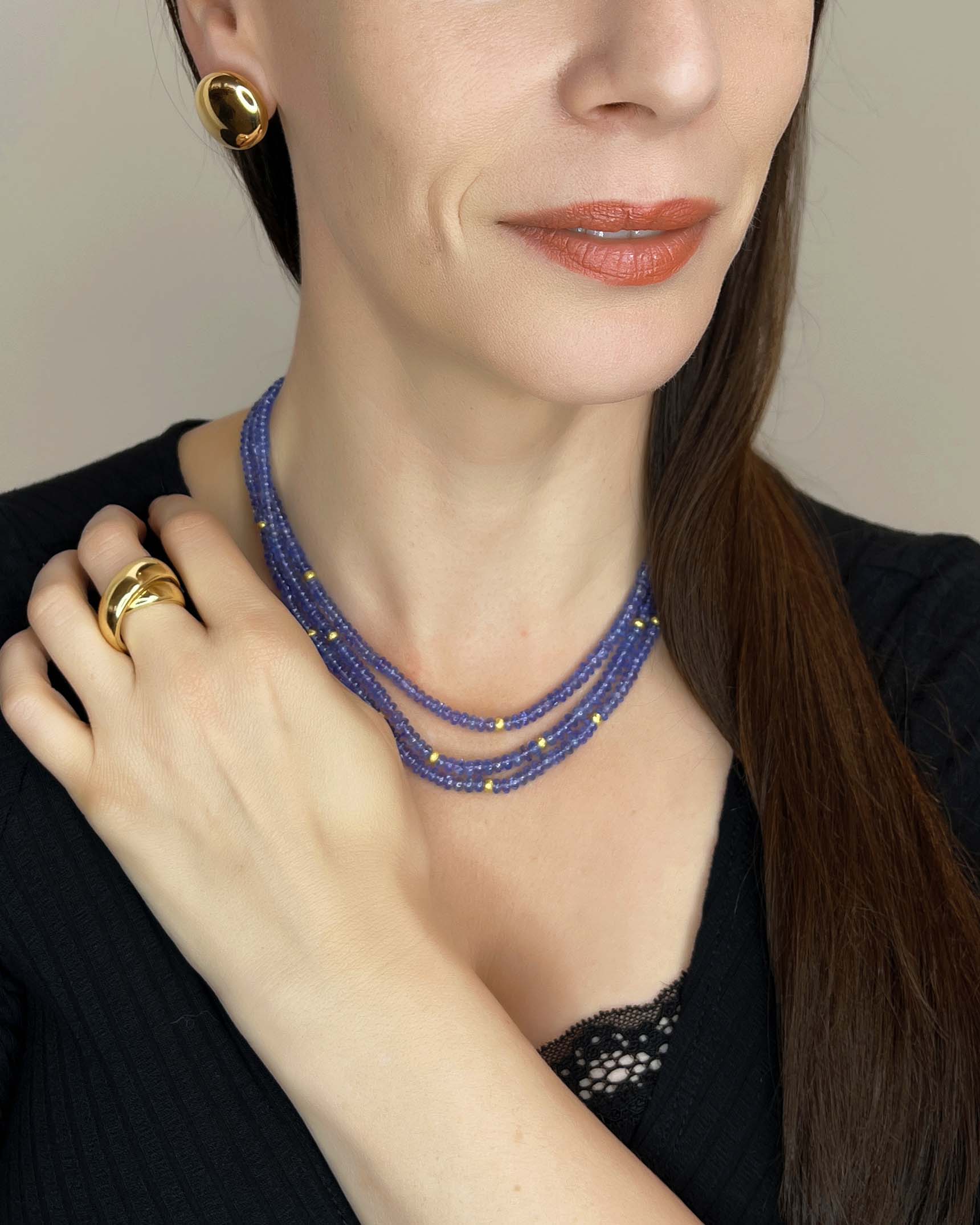 3-Strand Tanzanite and Yellow Gold Bead Necklace