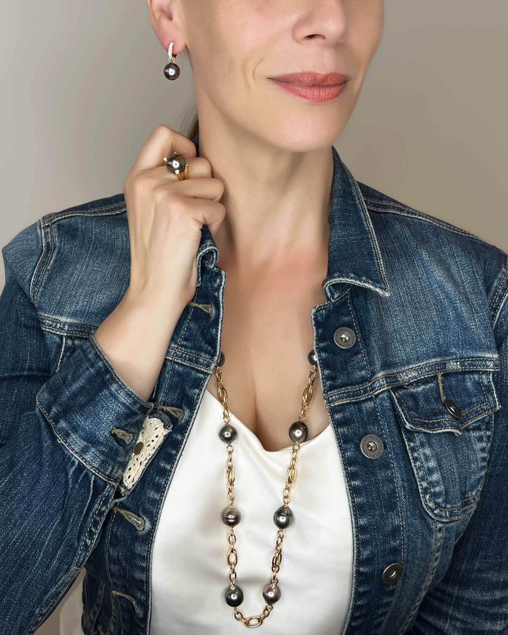 Black Tahitian Pearl and Pavé-Set Diamond Earrings