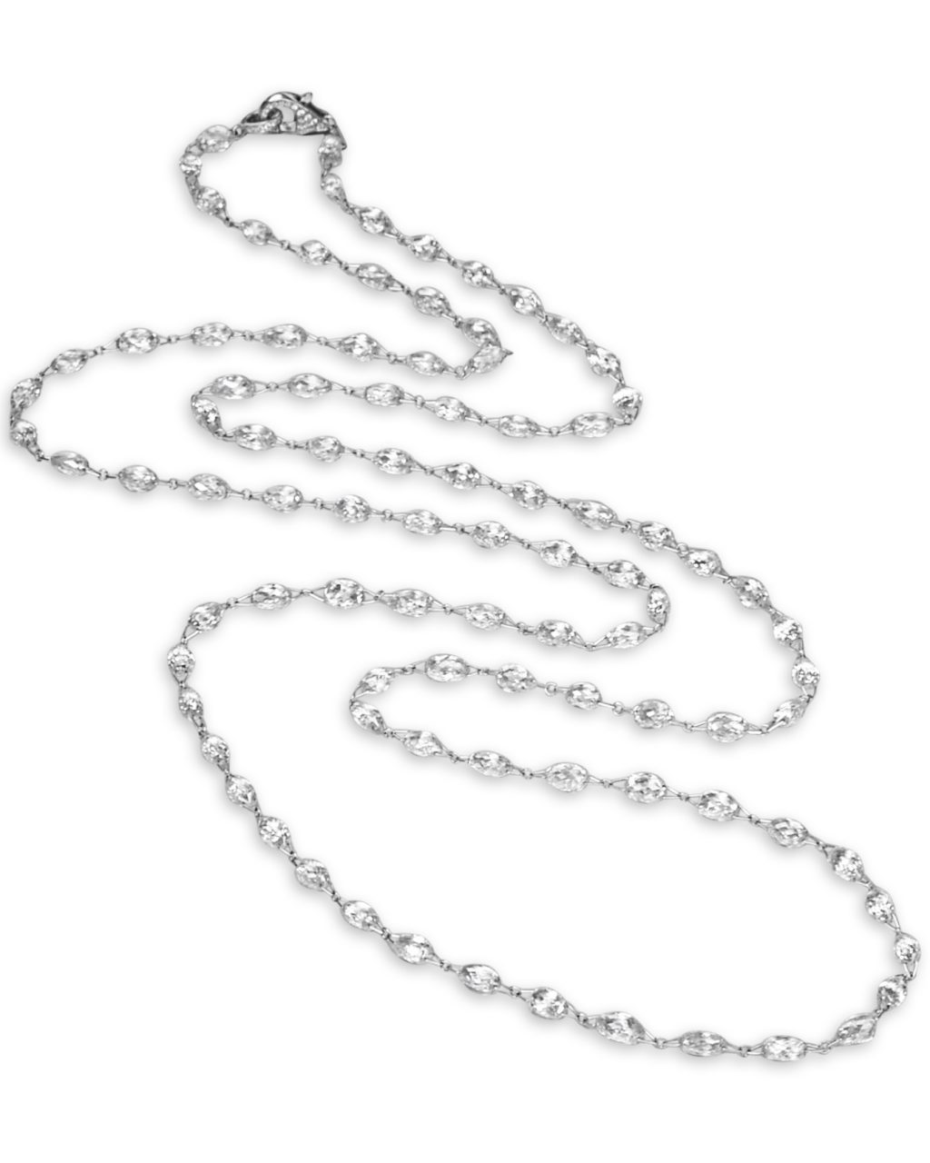 This exquisite necklace is made of 91 briolette cut diamonds (total weight of 46.51 carats, D-E-F color and VVS-VS clarity) all the way around precisely connected with platinum wire.