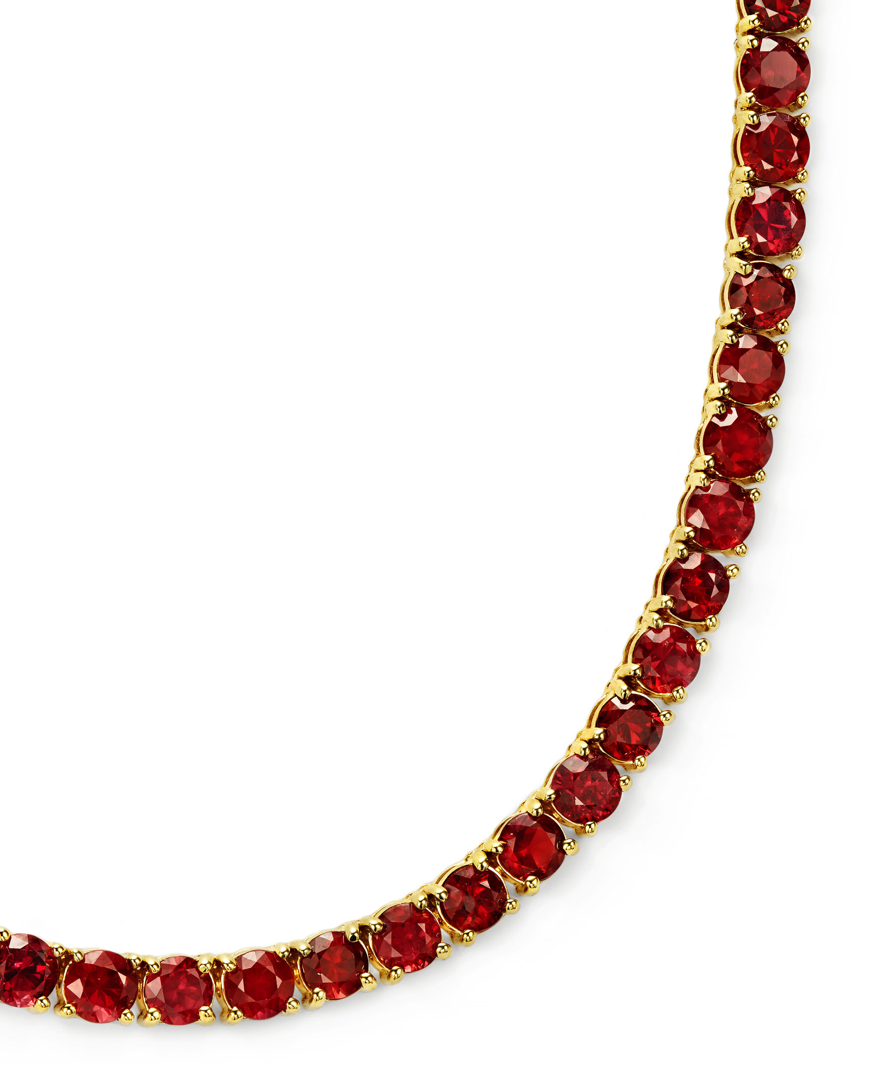 18 karat yellow gold necklace 4-prong set with 113 round Mozambique rubies (total weight of 23.98 carats).