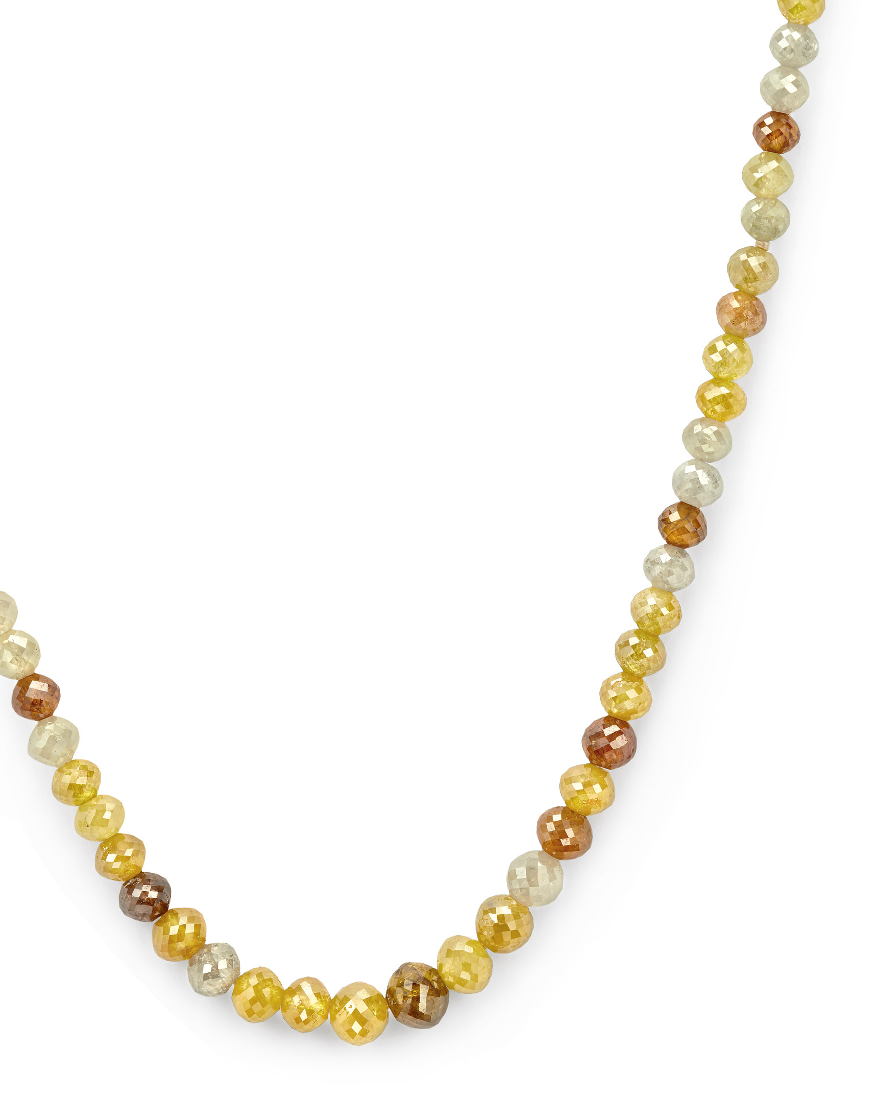 Necklace strung with 133 multi-color diamond beads and an 18 karat yellow gold lobster clasp.