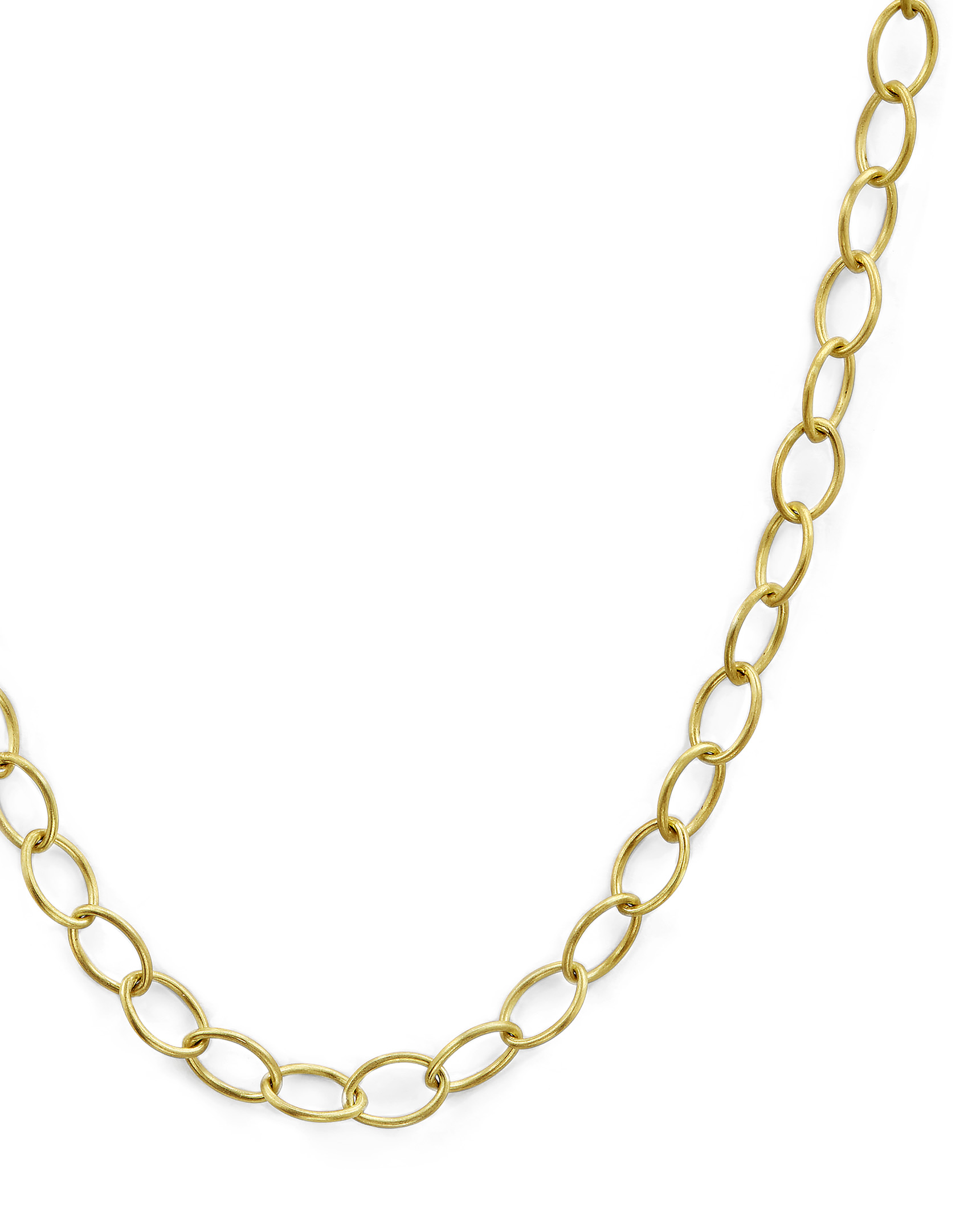 This chain necklace is crafted with oval shaped solid 18k yellow gold links.