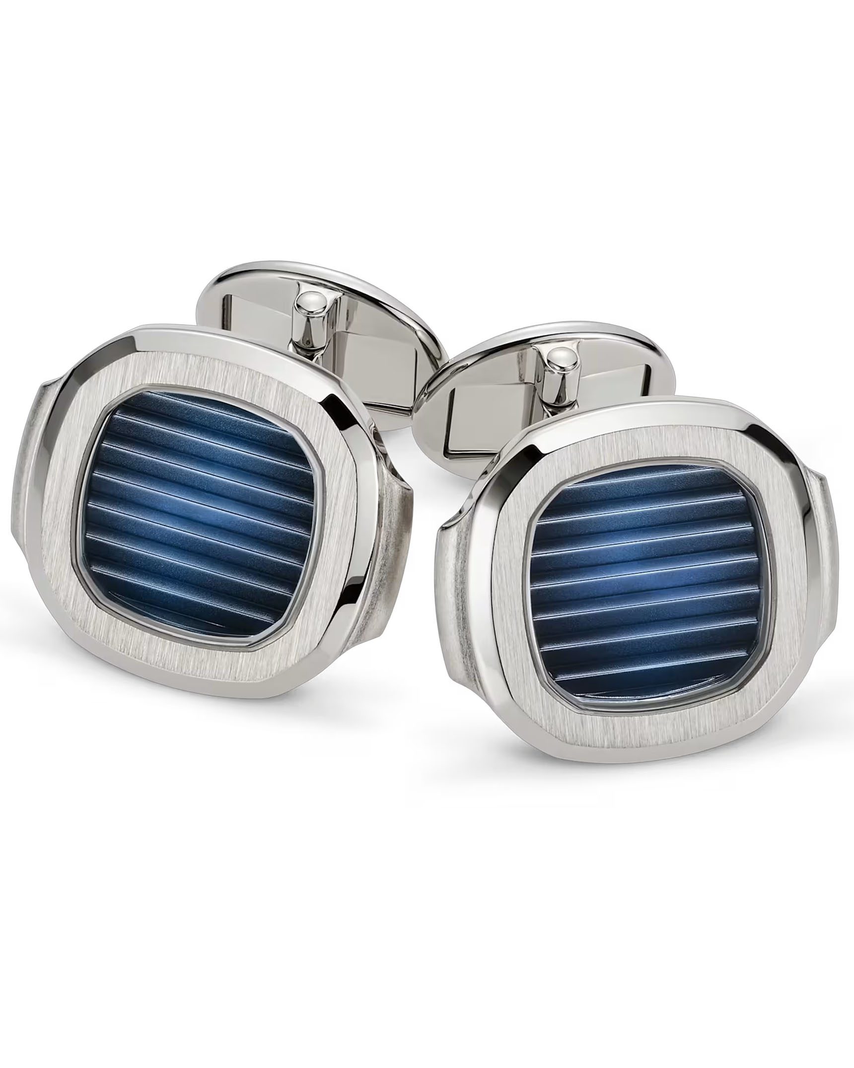18 K white gold Nautilus cufflinks with sunburst blue center.