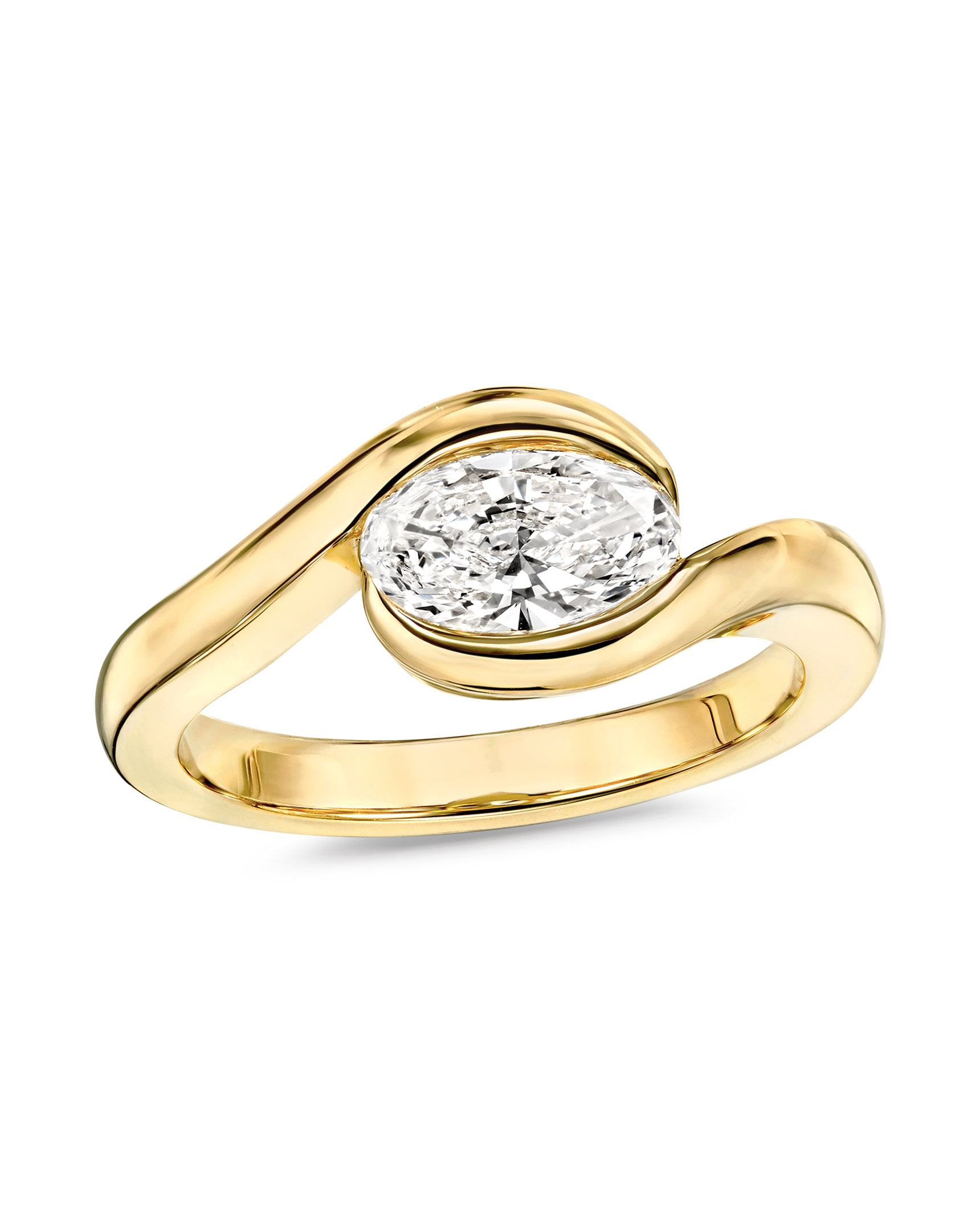Bezel-Set Oval Diamond and Yellow Gold Solitaire Ring
