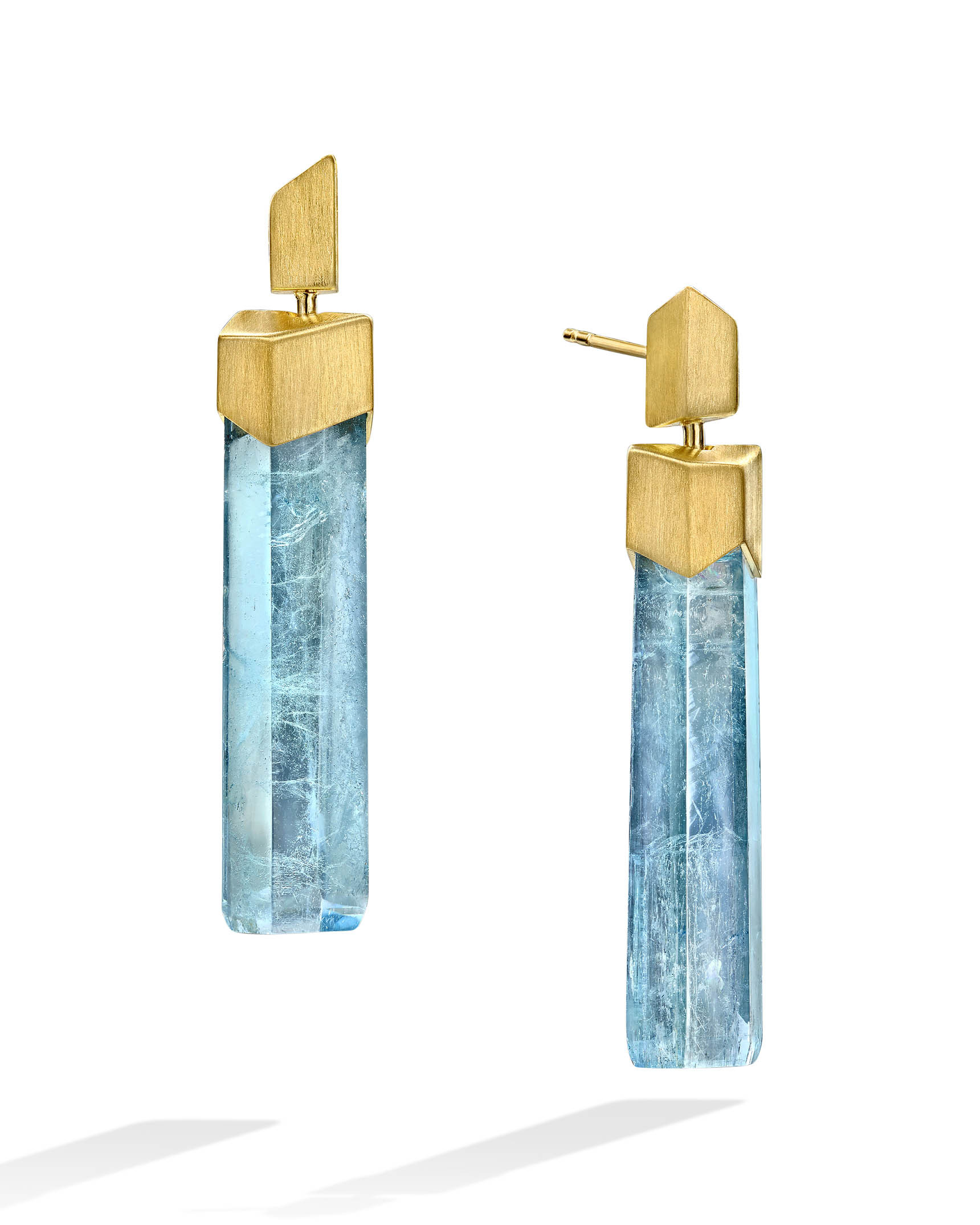 Aquamarine Crystal and Yellow Gold Dangle Earrings