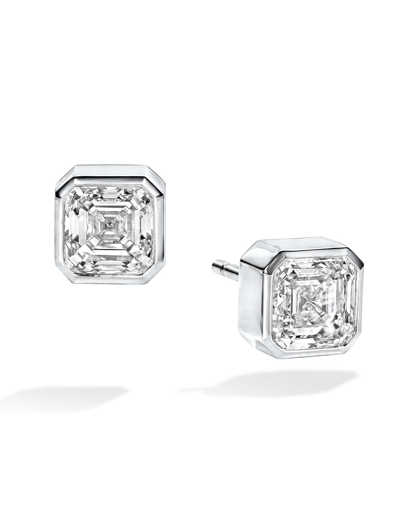 Platinum and Asscher-Cut Diamond Bezel-Set Stud Earrings
