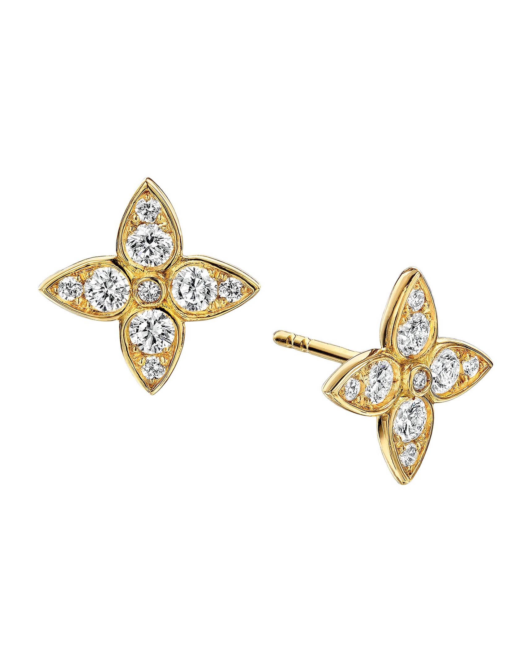 Yellow Gold and Diamond 4-Petal Flower Stud Lucilla Earrings by Mariani