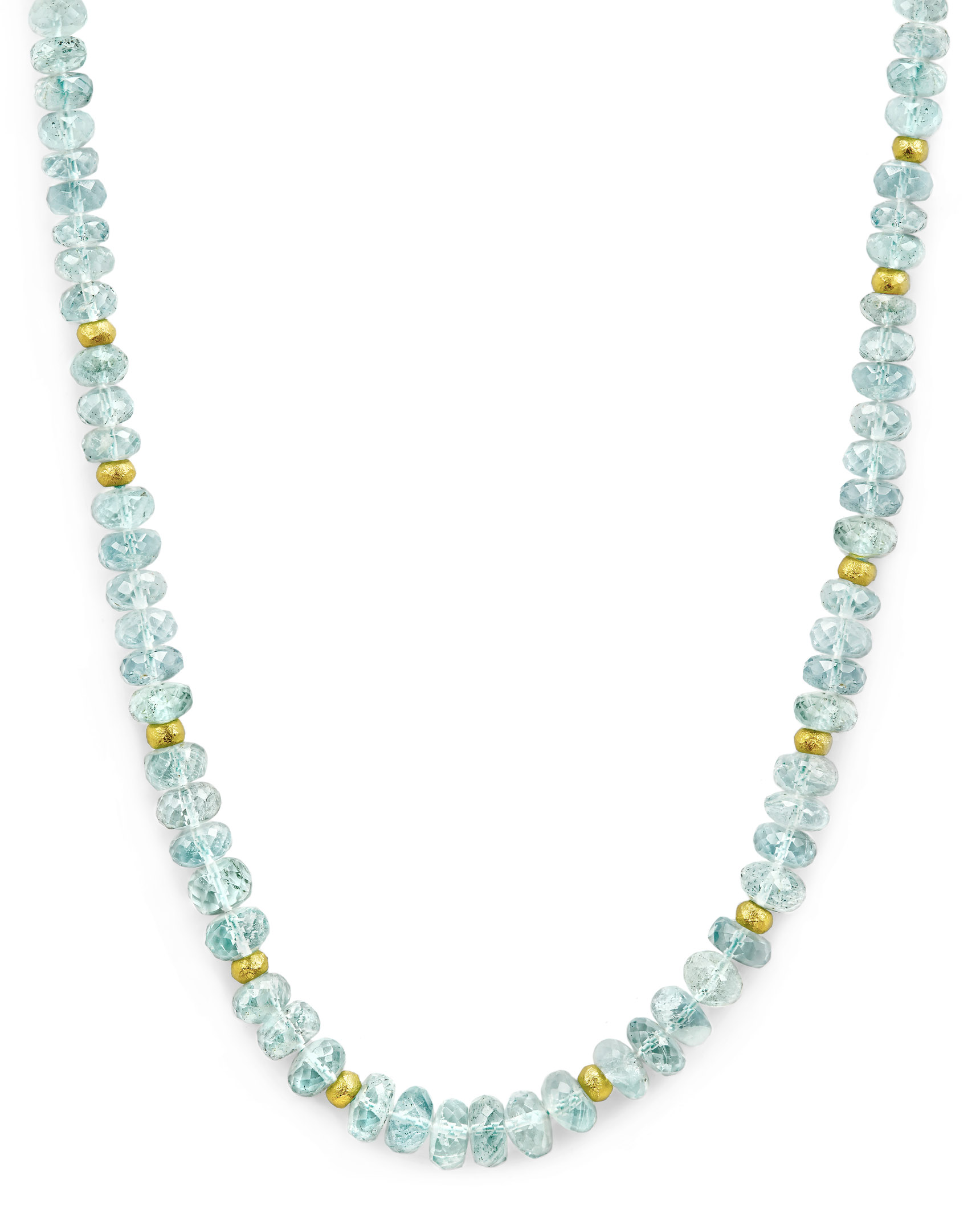 Faceted Blue Aquamarine and Yellow Gold Bead Necklace