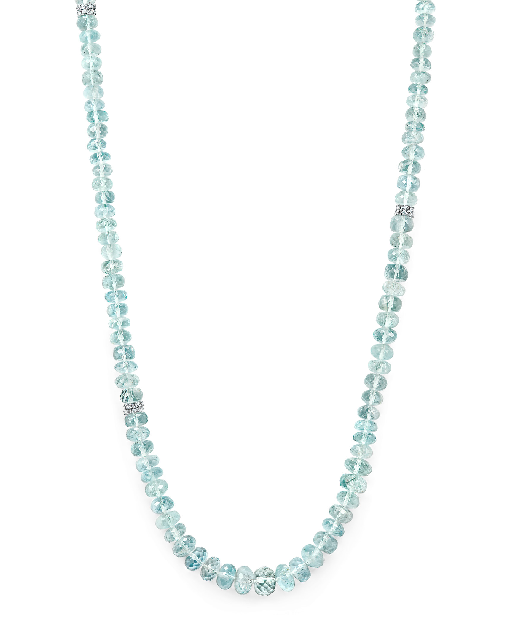 Faceted Blue Aquamarine and Diamond Bead Necklace
