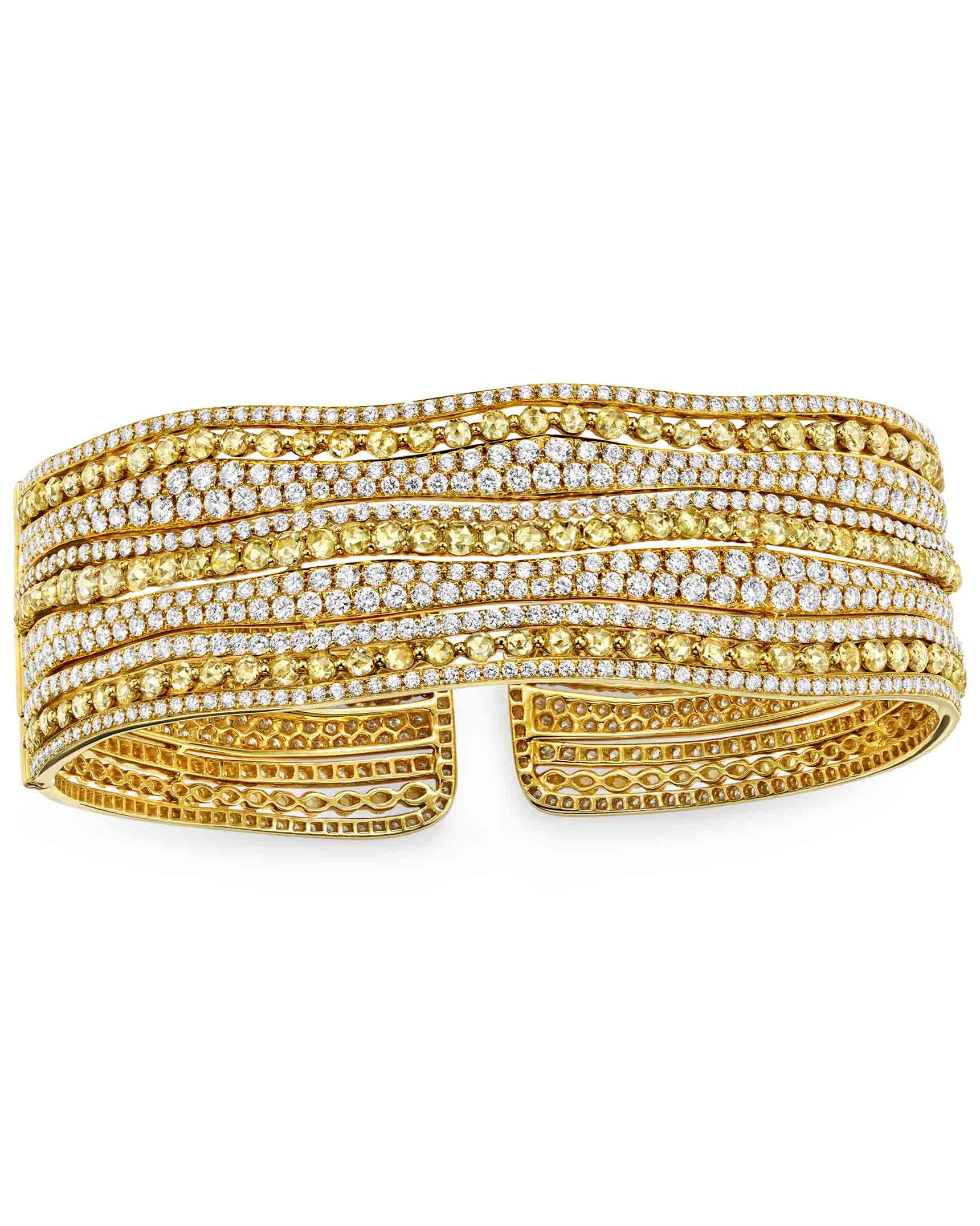 11-Row Round White Diamond and Rose-Cut Yellow Diamond Bangle