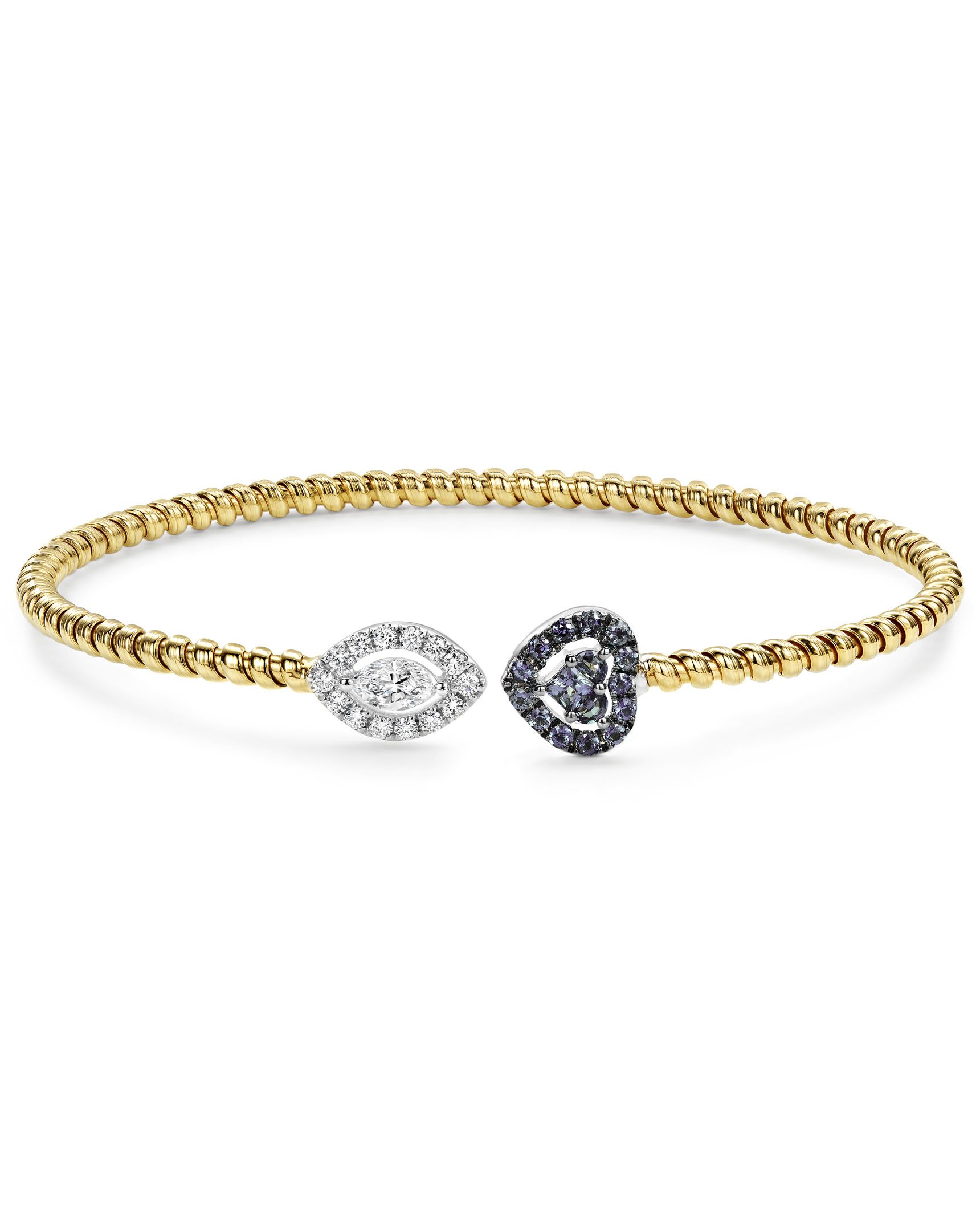 Alexandrite and Diamond Twisted Yellow Gold Bangle